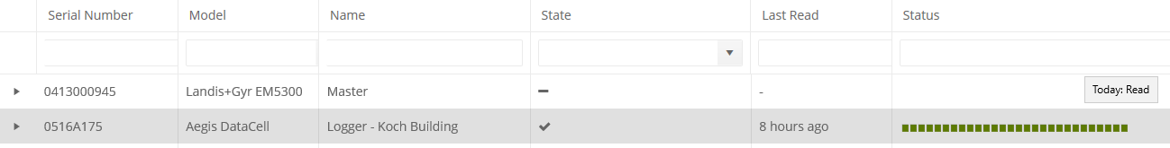 Use the filter boxes to refine your search, for example to find a meter by its serial number.